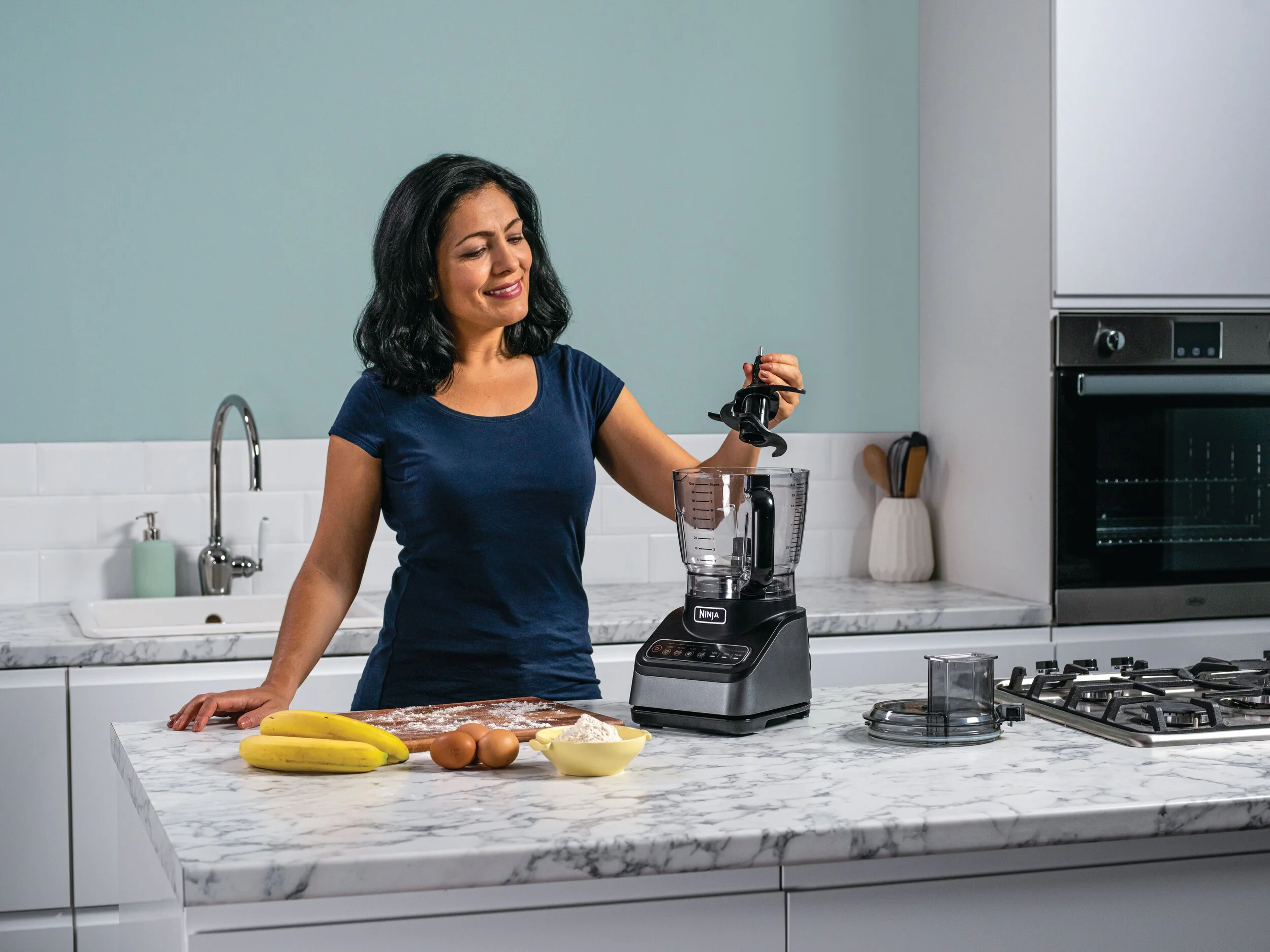 ყველა ინგრედიენტი მოათავსეთ Ninja-ს ბლენდერში და კარგად დააბლენდერეთ. ერთგვაროვან მასას რომ მიიღებთ, პესტოს სოუსიც მზად არის.